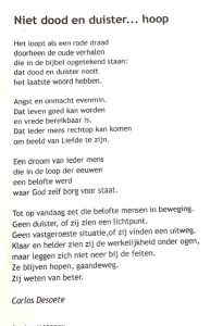 Ook iedere zondag van de Advent lagl er een nieuwe tekst op de tafel als inspiratie voor de meditatie.