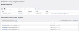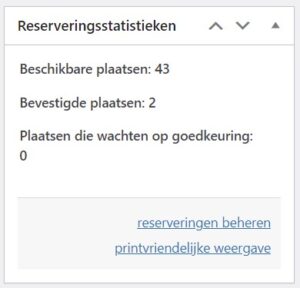 Het is ook mogelijk op de reserveringen beheer pagina te komen vanuit het beheerdersscherm van het evenement. Daar staan rechts de reserveringsstatistieken, met een link naar deze reserveringen beheer pagina.