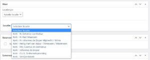 Momenteel zijn de kerkgebouwen als locaties opgezet. Sndere locaties zoals bijgebouwen of delen van de kerk kunnen als locatie worden toegevoegd via de Locaties toevoegen functie.