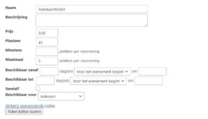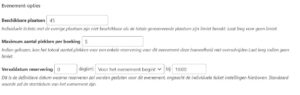 Bij de reserveringen / registratie opties kunnen het aantal beschikbare plaatsen en het maximum aantal plaatsen per boeking worden opgegeven.