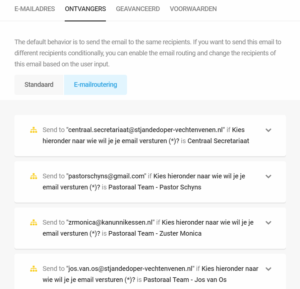 In het contactformulier van de parochie wordt de ontvanger bepaalt op basis van een eerder gemaakte keuze.