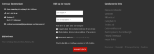 Links staan de contactgegevens van het centraal of lokaal secretariaat, in het midden het aanmeldformulier voor de lokale verzendlijsten, en rechts staan links naar relevante externe partijen, bijvoorbeeld de lokale katholieke school.
