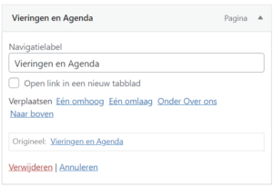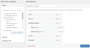 Aan een menu kunnen pagina’s en berichten worden toegevoegd, en “aangepaste links”, dat zijn links / URL’s naar externe websites.