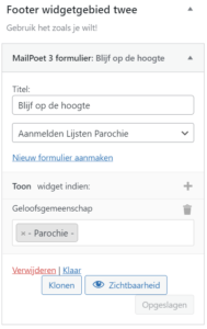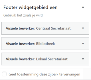 Je kunt voor de pagina’s en berichten niet opgeven welke widgets op de footer moeten worden geplaatst, terwijl de inhoud van de footer welk per geloofsgemeenschap anders is.