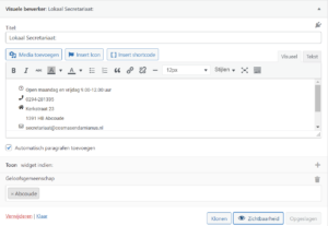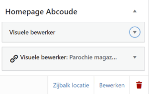 Elke geloofsgemeenschap heeft een widget voor de linker zijbalk – met het menu – en een widget voor de rechter zijbalk, voor de homepagina van de geloofsgemeenschap.