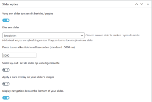 Deze slider instellingen worden niet geërfd, en moeten voor elke pagina en bericht worden opgegeven.