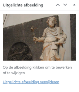 Een uitgelichte afbeelding kan ook aan een pagina worden toegevoegd. Dat is minder relevant, omdat pagina’s niet in overzichten worden weergegeven.