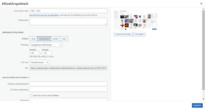 Met het potlood icoontje kan de bewerking worden gestart. Opgegeven kan worden hoe de afbeelding moet staan ten opzichte van de omliggende inhoud, en of de afbeelding zelf een link moet zijn naar een andere URL en hoe die link dan geopend moet worden.