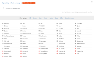Een andere knop staat toe om een shortcode in te voegen. Dit betreft shortcodes van de Shortcodes Ultimate plugin, een verzameling shortcodes.
